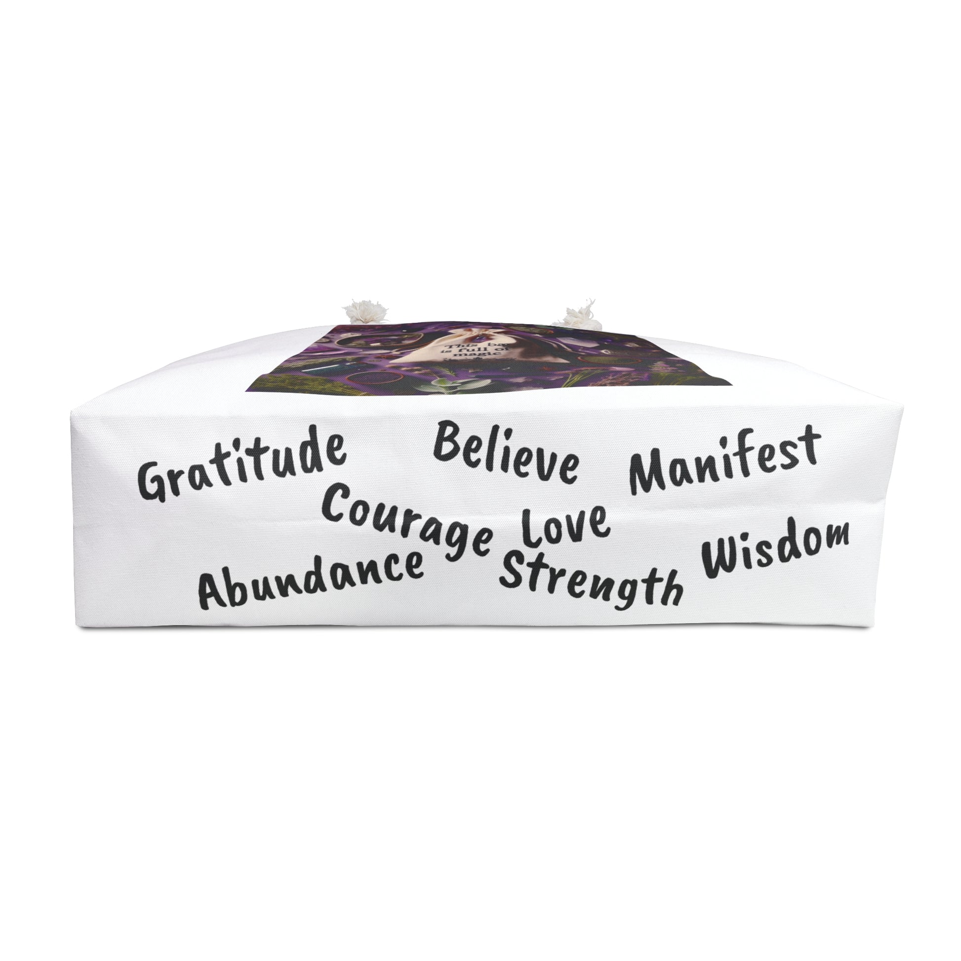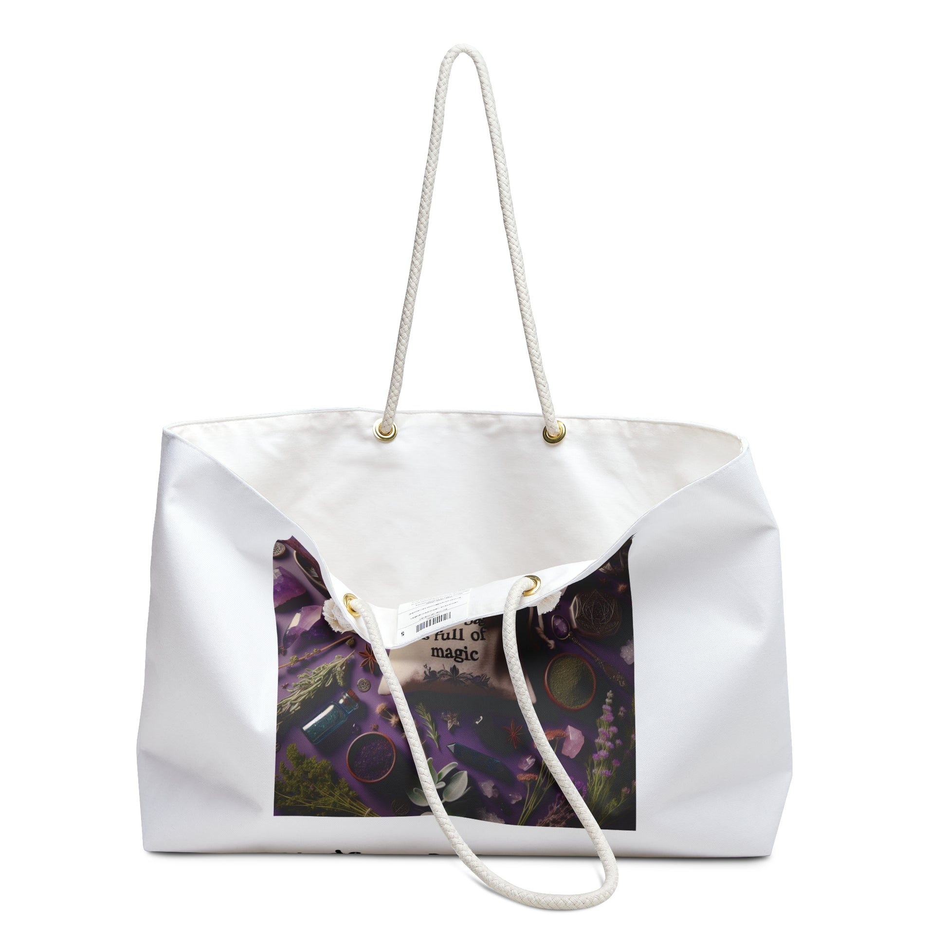 This witchy weekender bag is perfect for those who love a touch of magic in their accessories. With cream-colored rope handles and a spacious interior, this bag is ideal for weekend getaways or overnight trips. It adds a mystical vibe to any outfit and is relevant for those who enjoy witchy aesthetics or love celebrating Halloween.